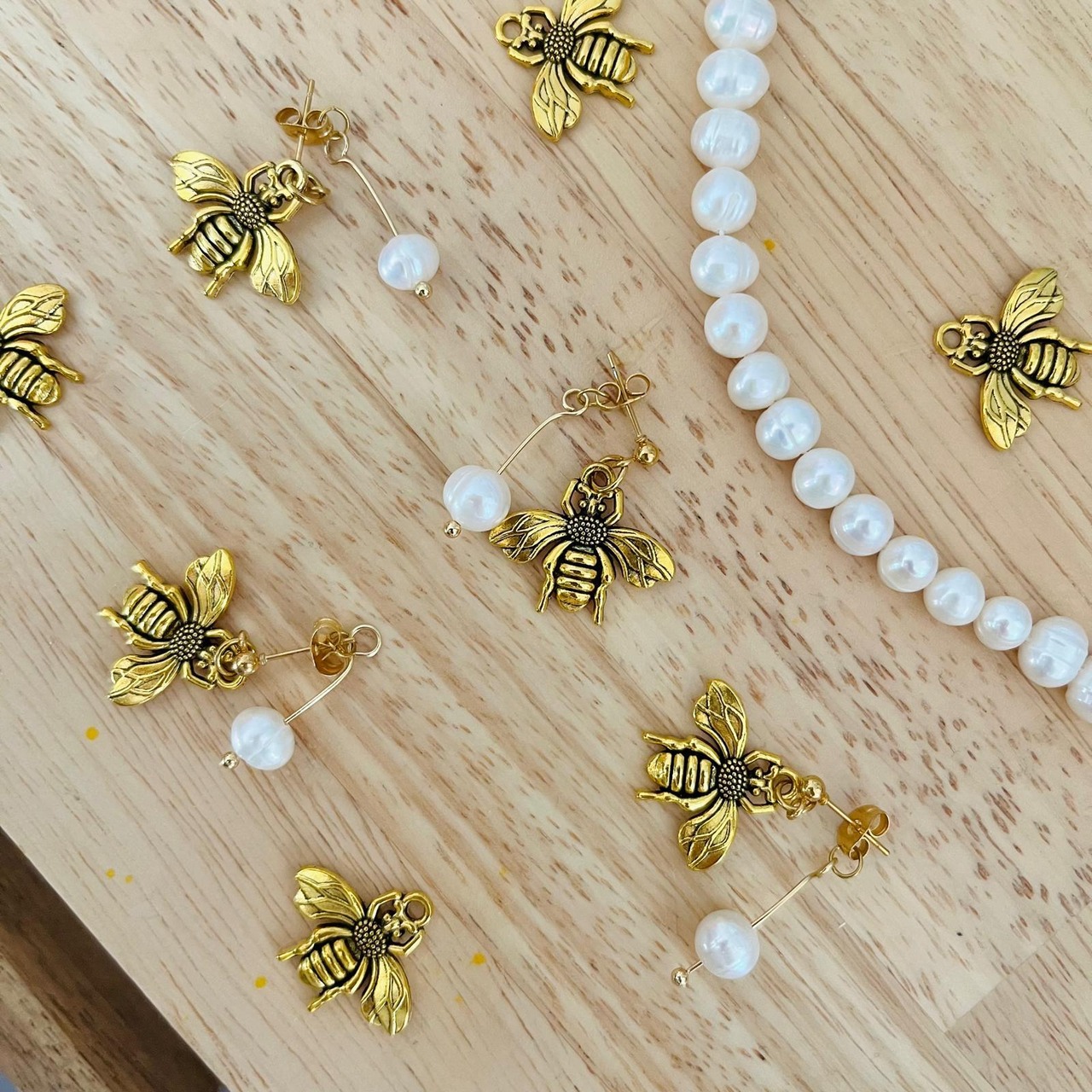 揺れる♪ ハチさんピアス 淡水パール使用 *デザイン上ピアスのみ販売